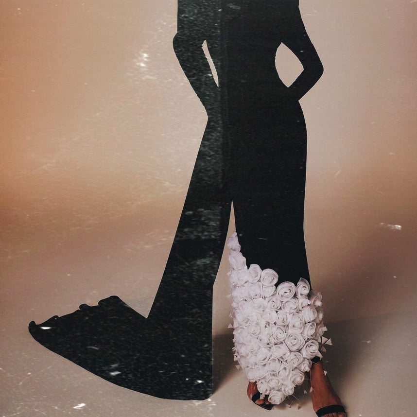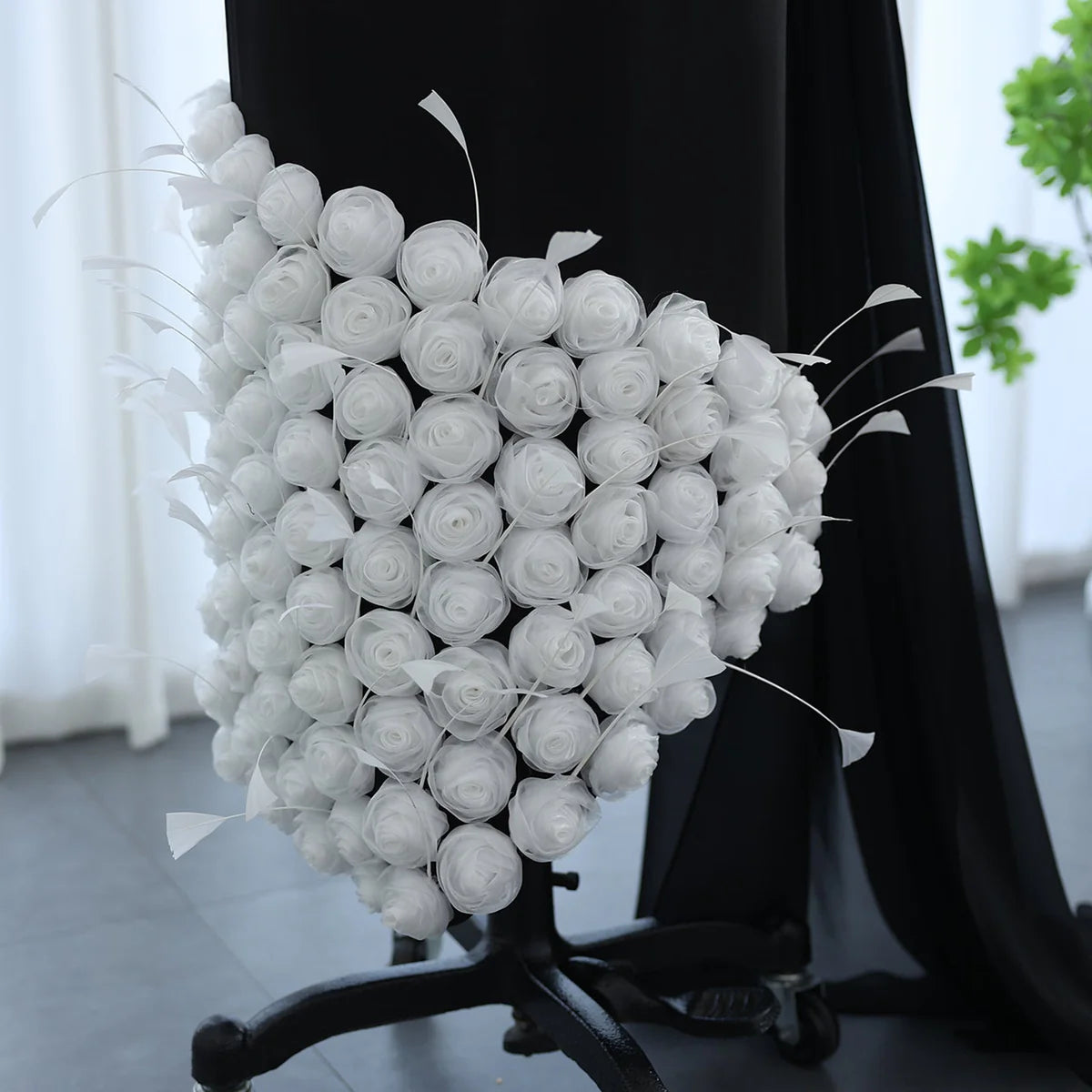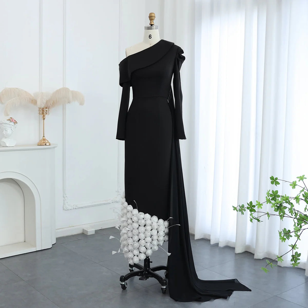 فستان فاخر بأكمام طويله وتصميم ورود بارزه