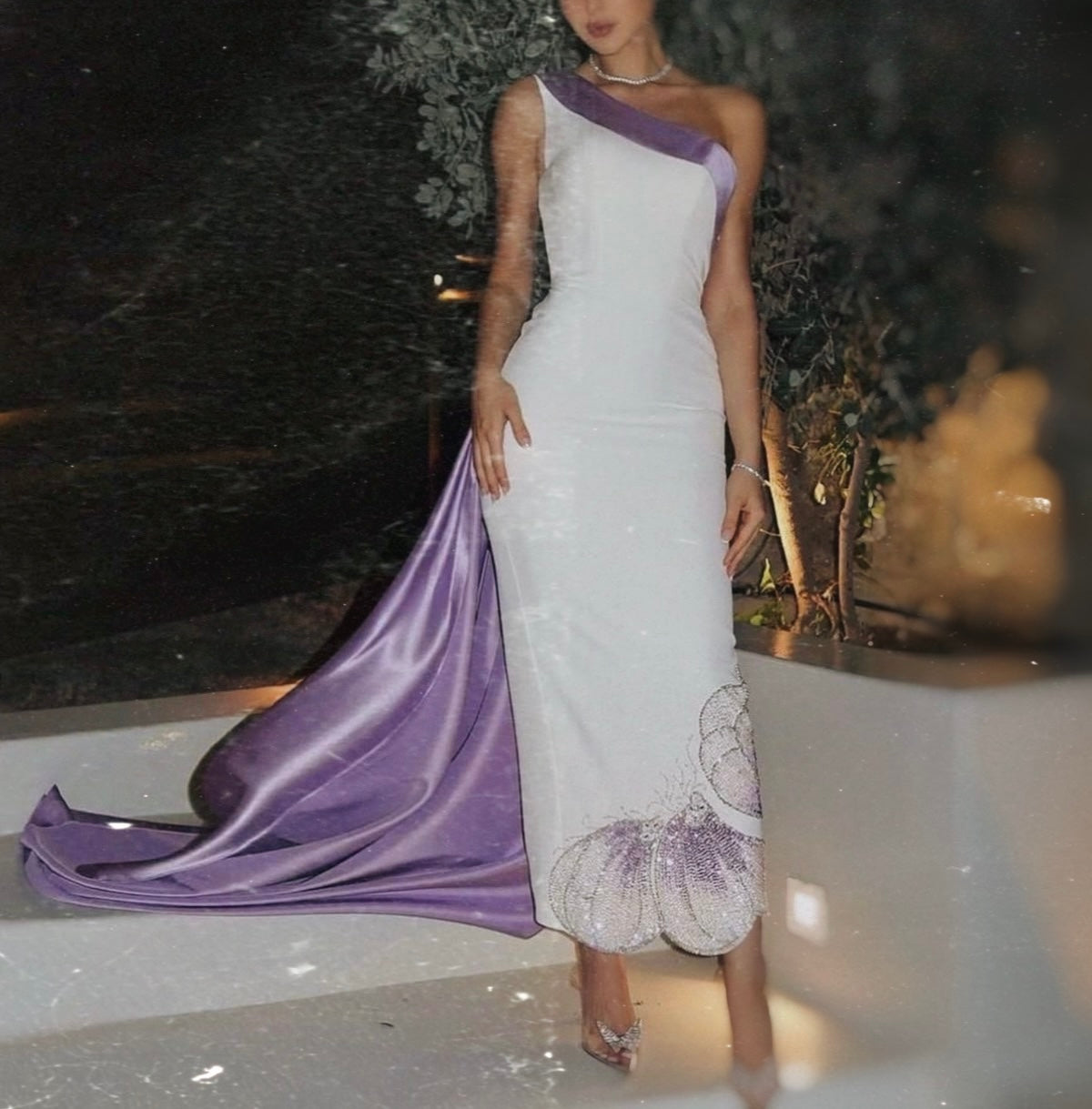 فستان مميز بتصميم أوف شولدر وتطريز بترفلاي