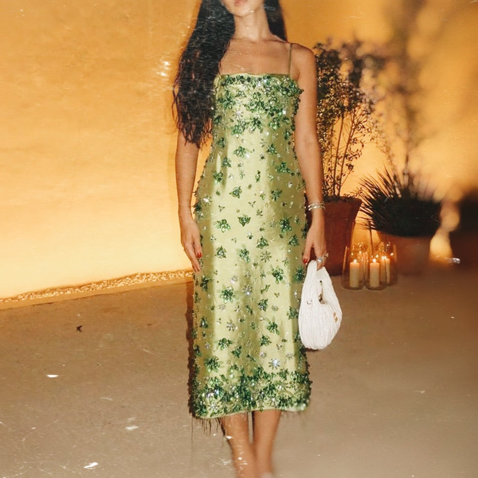 فستان بتصميم مميز مزين بالكريستال والزخارف الراقيه