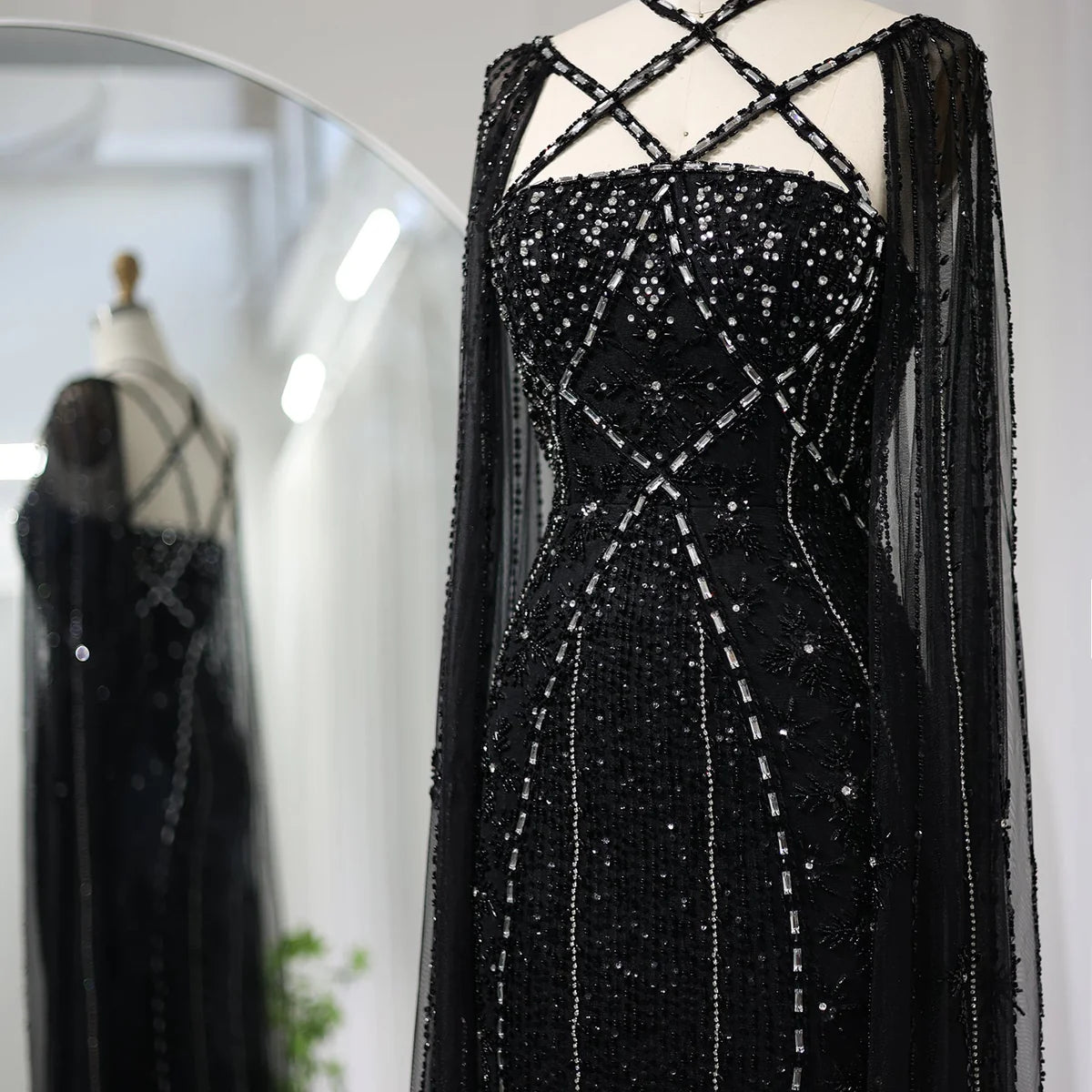 فستان مطرز بموديل حبال على الصدر