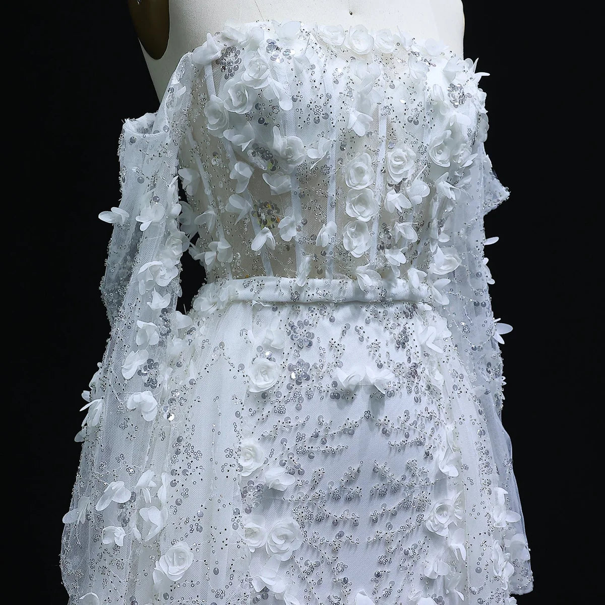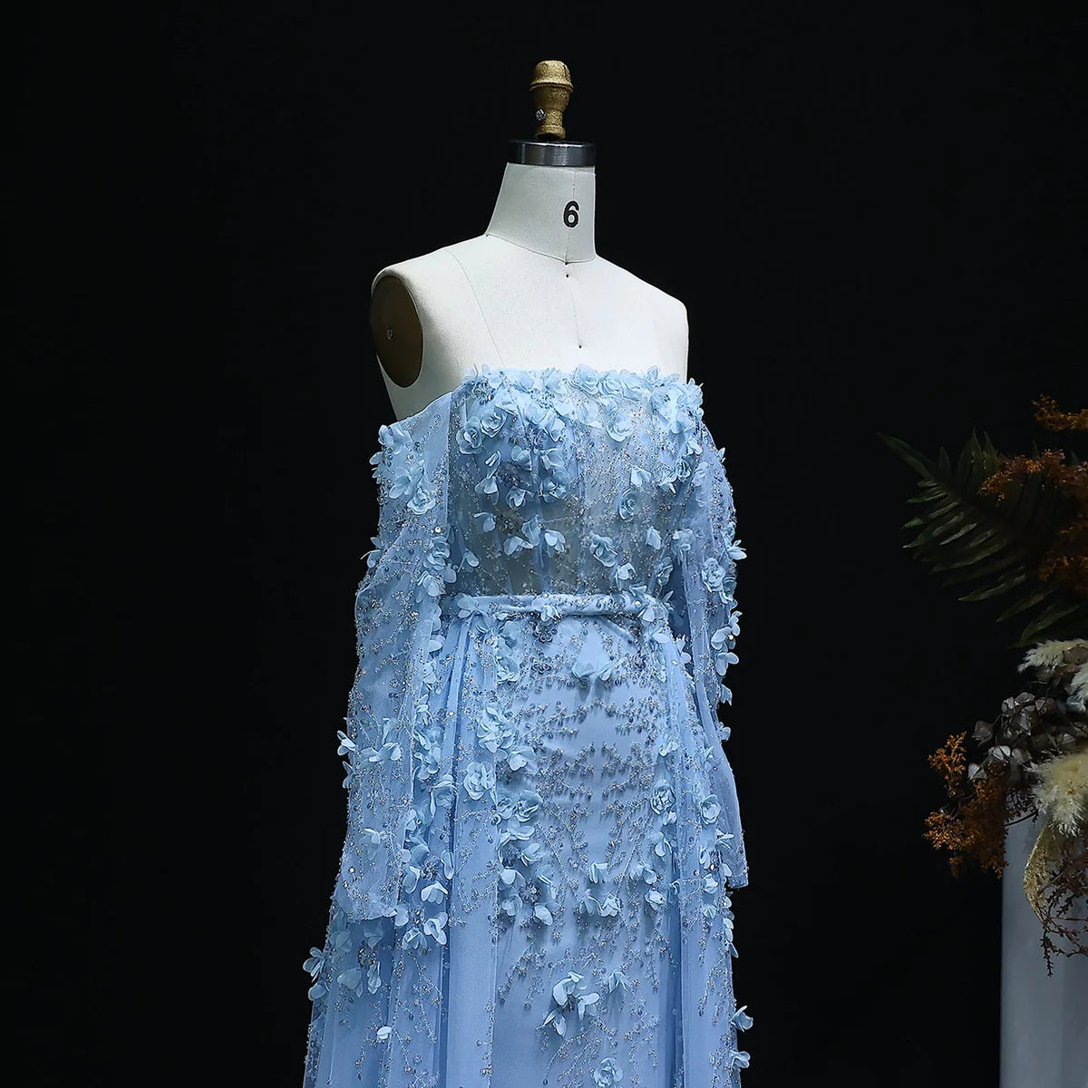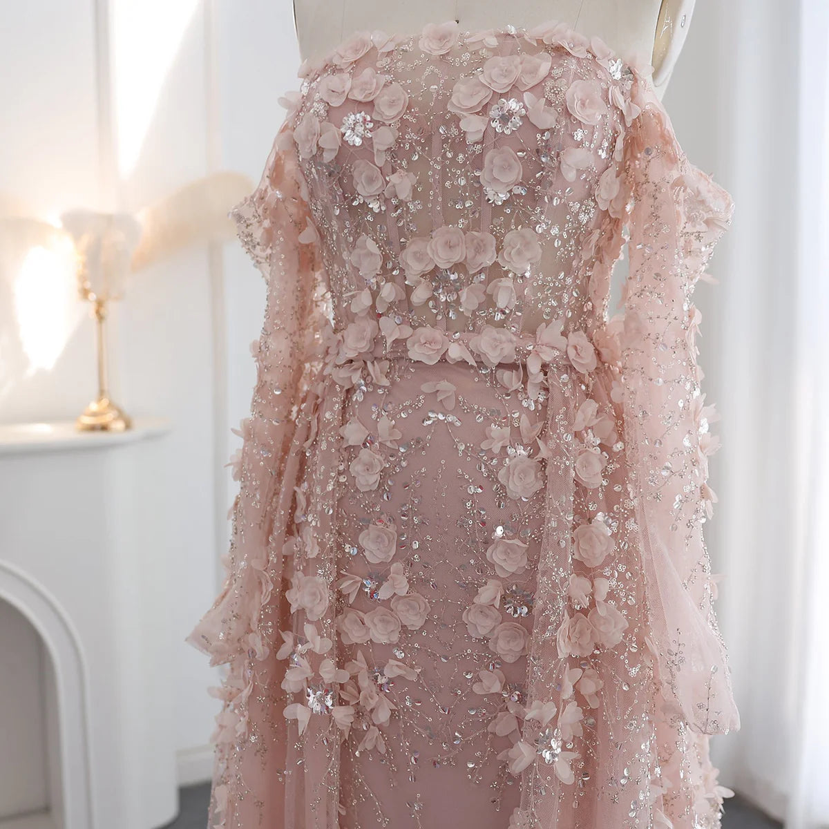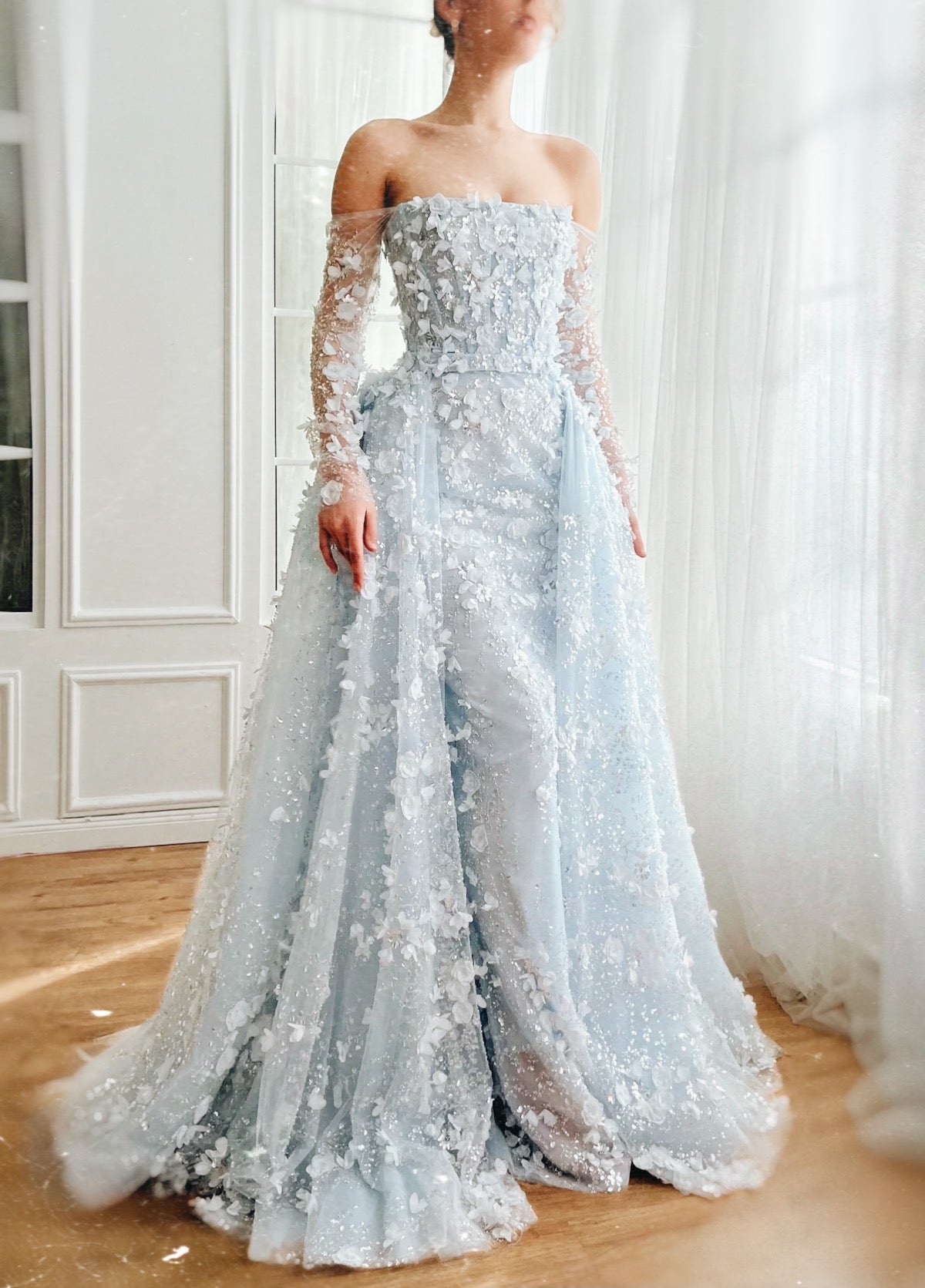فستان بورود بارزه وذيل طويل بتطريز فاخر