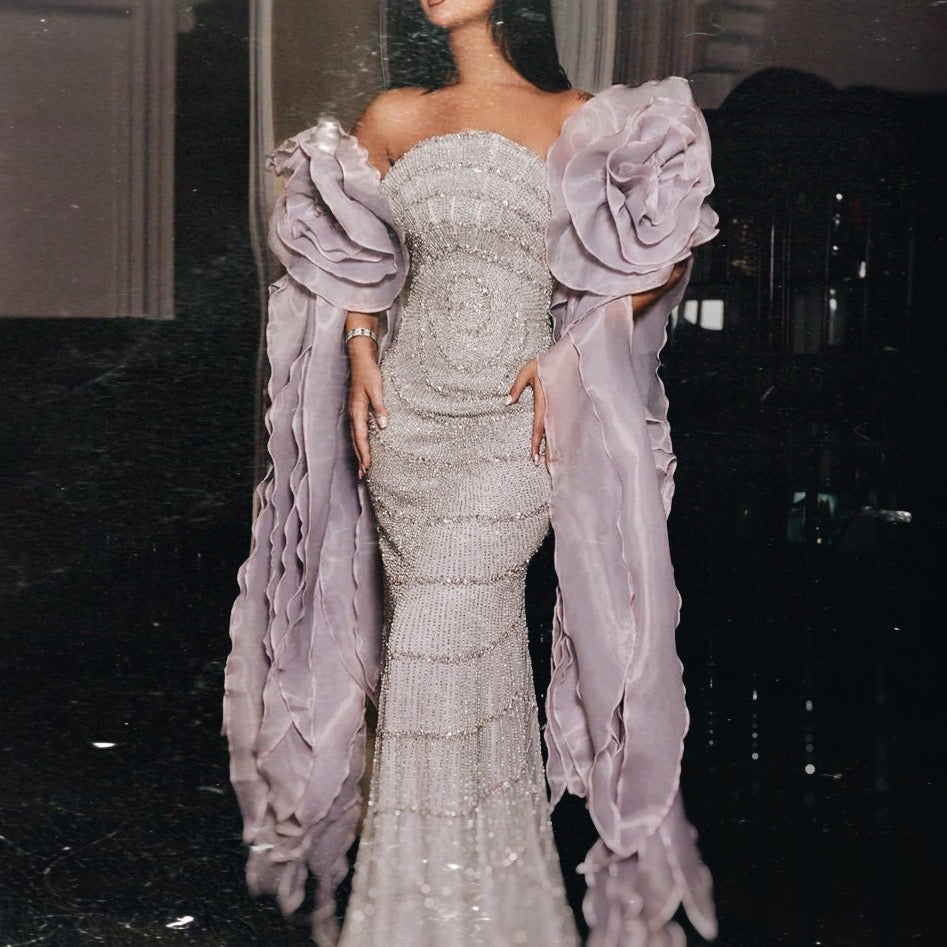 فستان راقي بتصميم مميز وتطريز يدوي