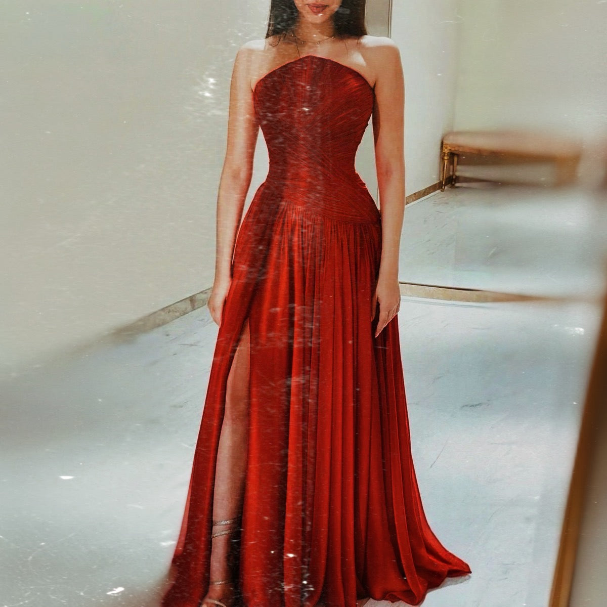 فستان راقي مصمم بالشيفون للمسه انسيابية