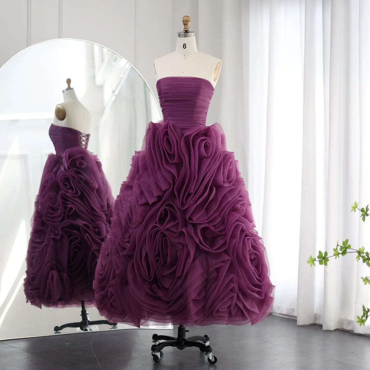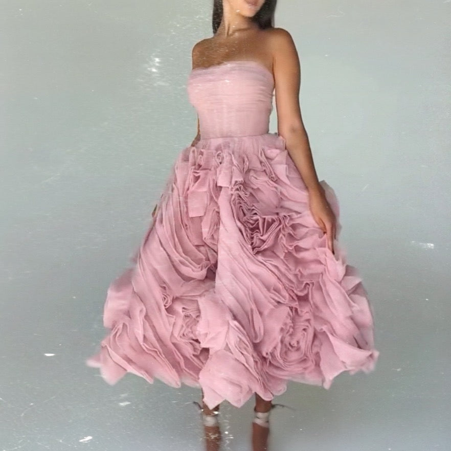 فستان فاخر بتصميم ورد ثلاثي الأبعاد