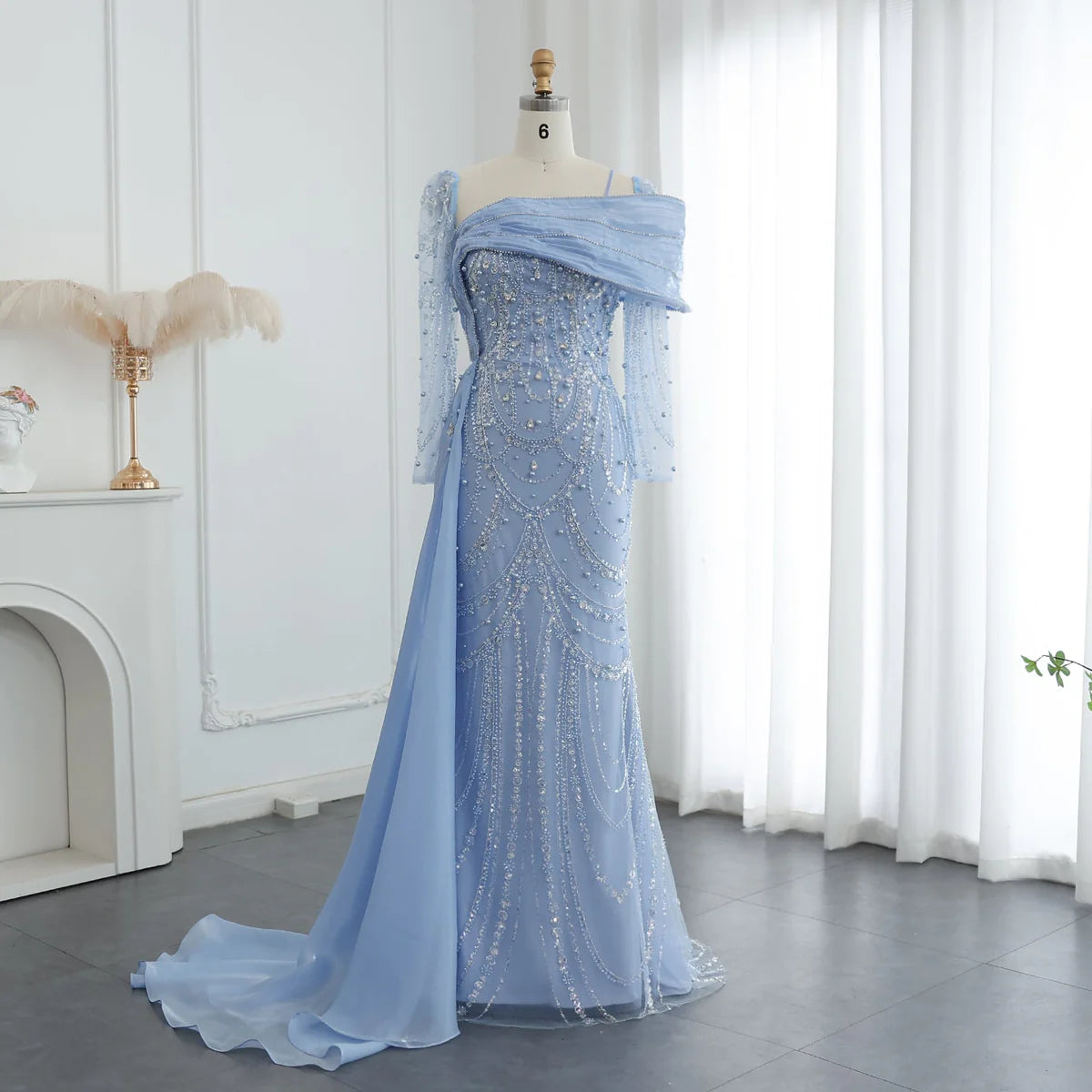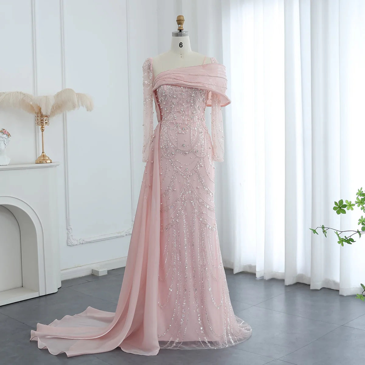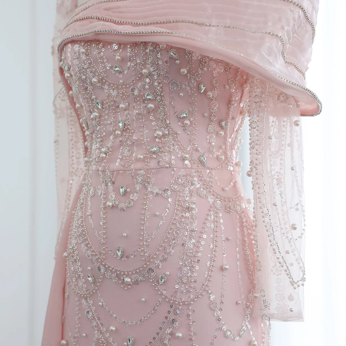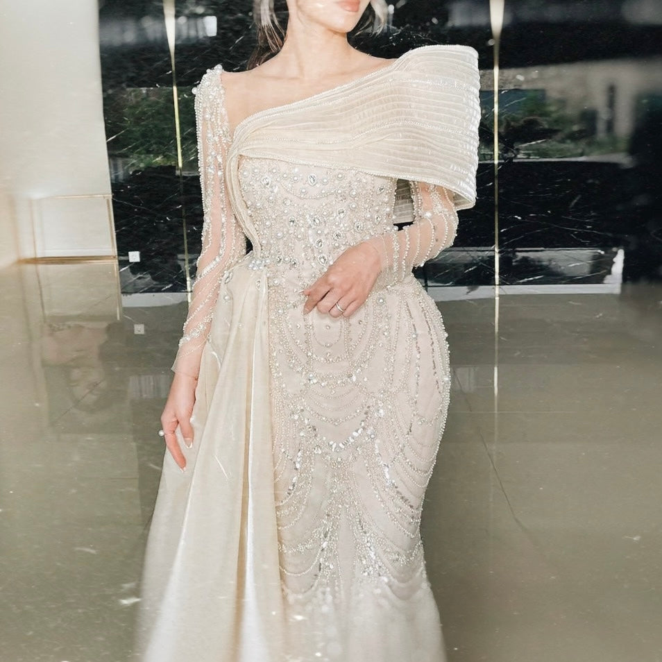 فستان فاخر بتطريز يدوي و مرصع بالكريستال