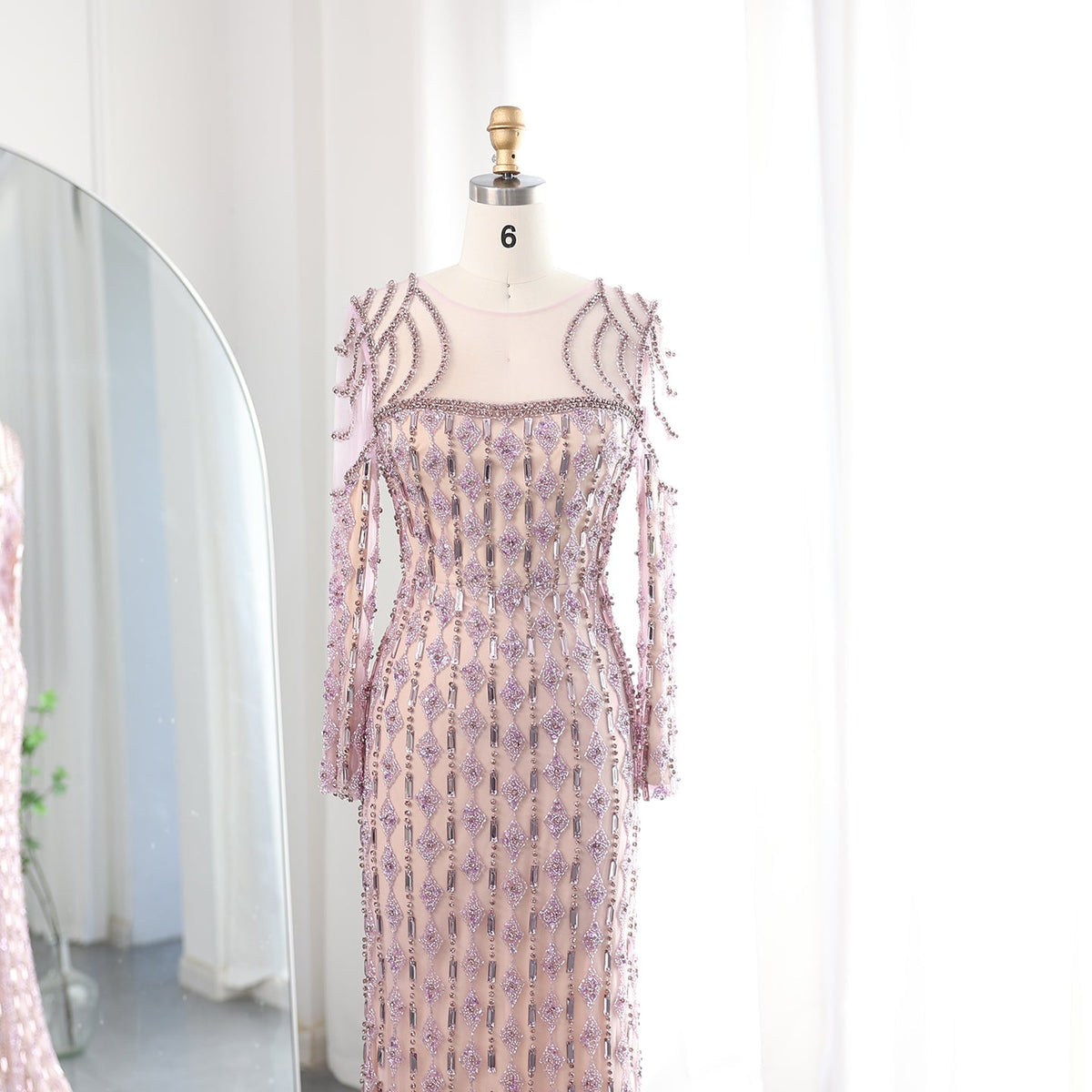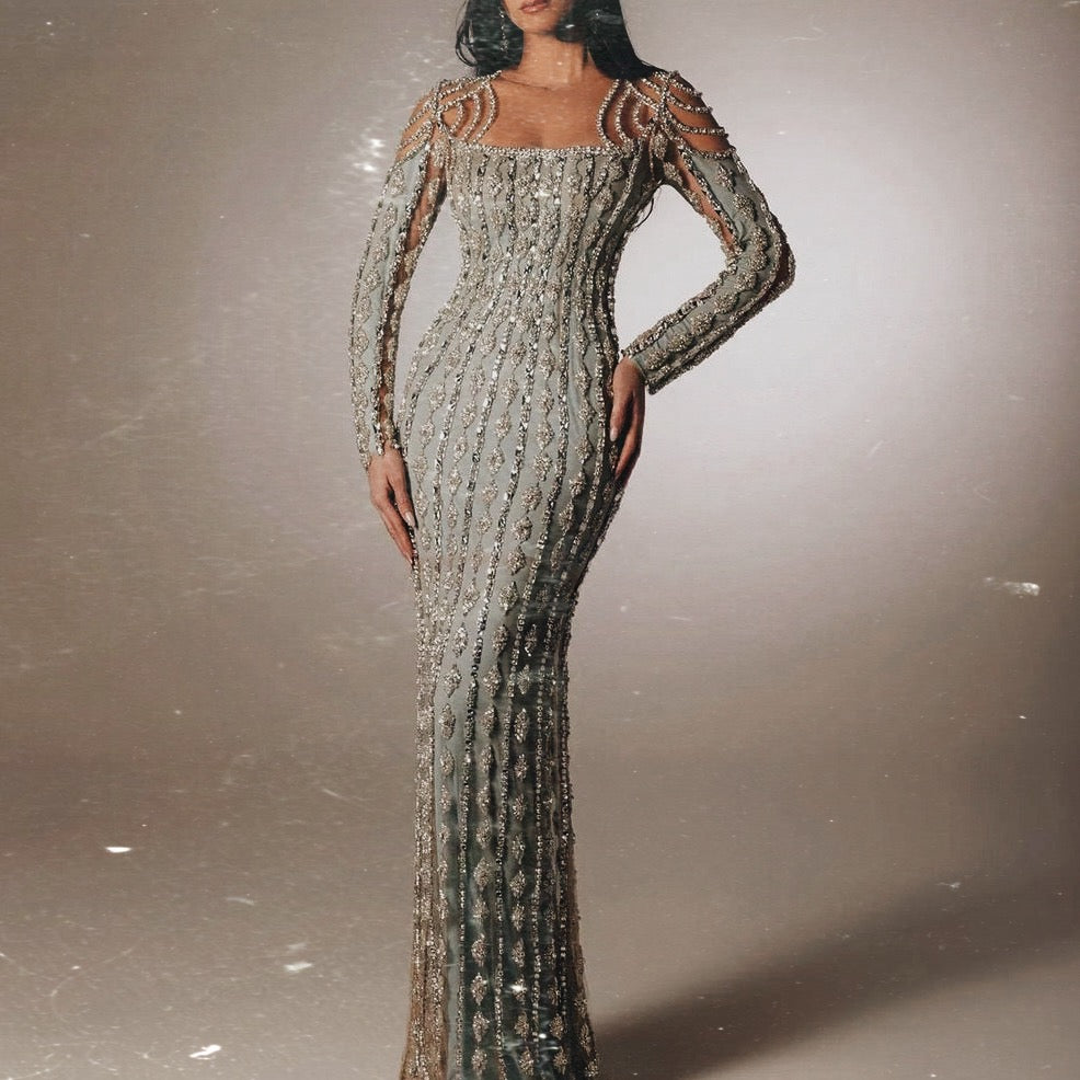 فستان مطرز باكمام طويله