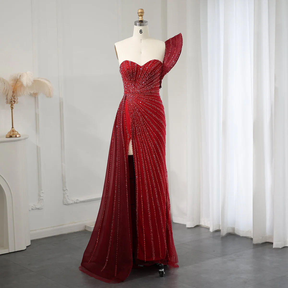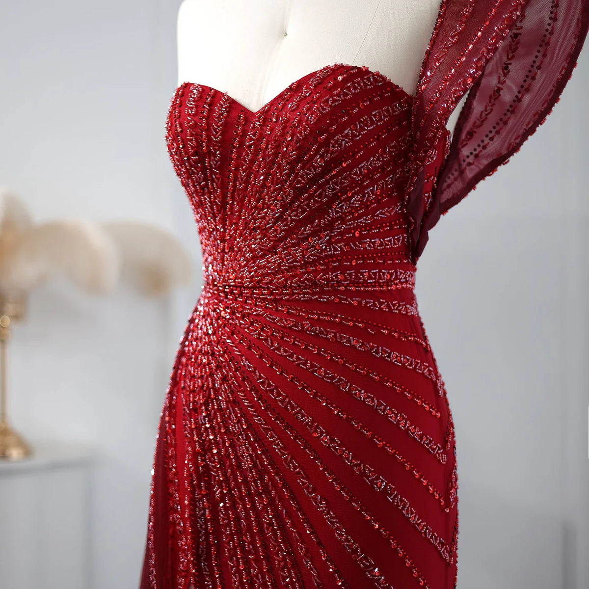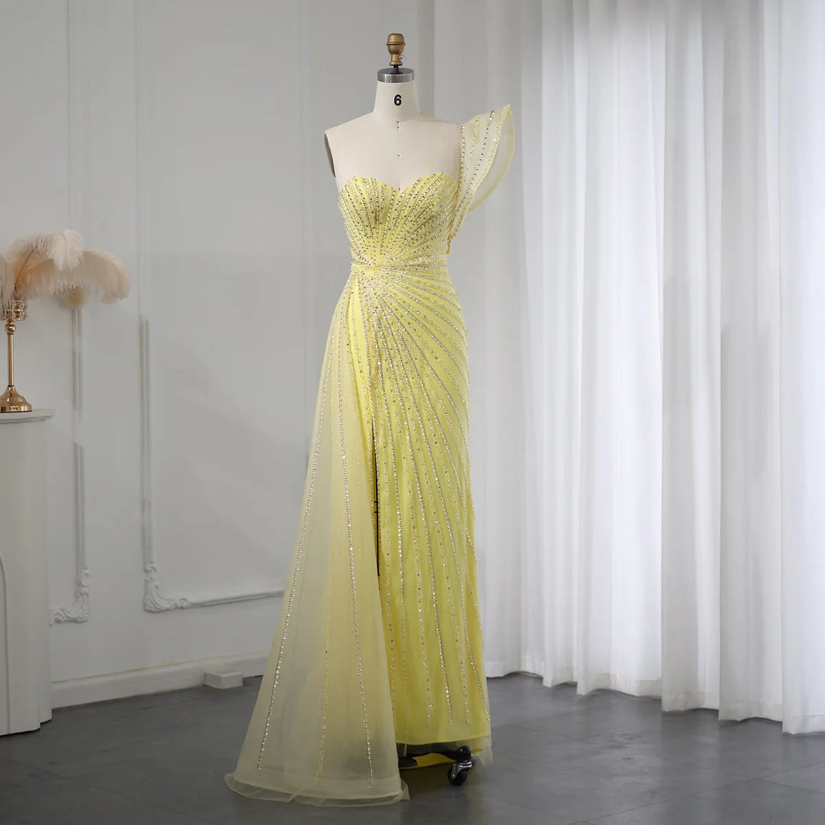 فستان مطرز بتصميم فاخر مع ذيل طويل