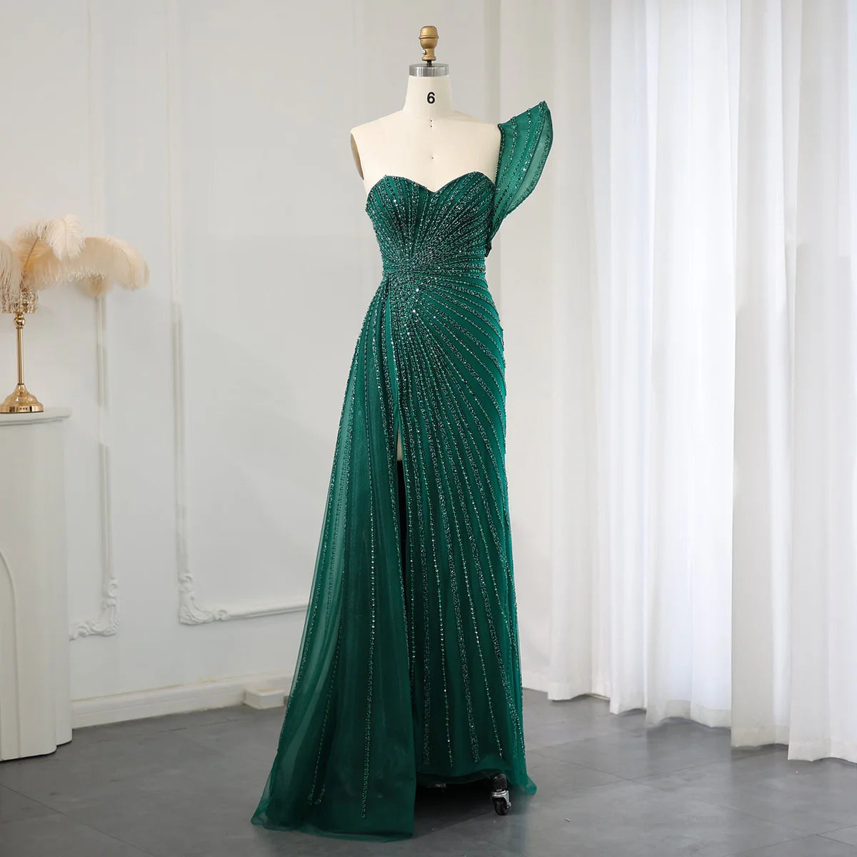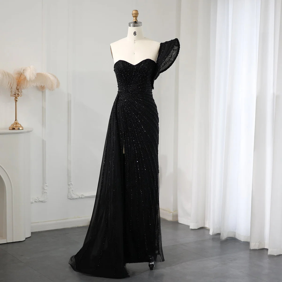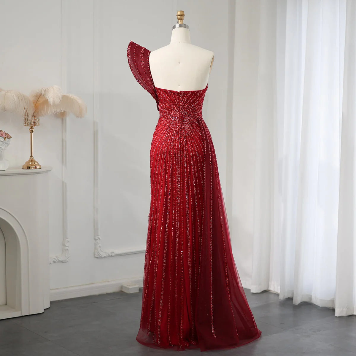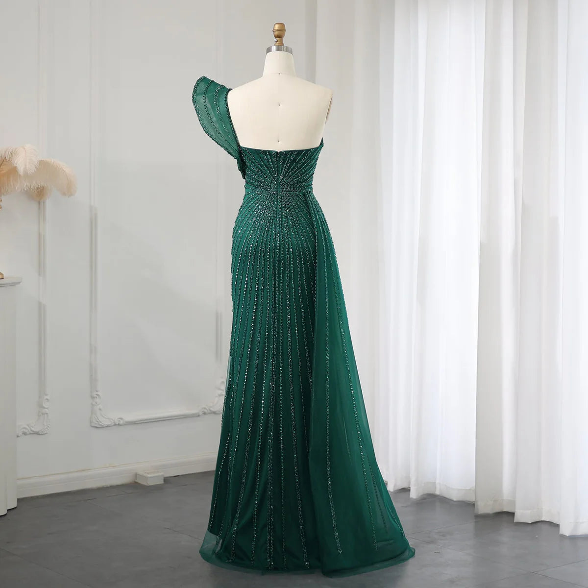 فستان مطرز بتصميم فاخر مع ذيل طويل