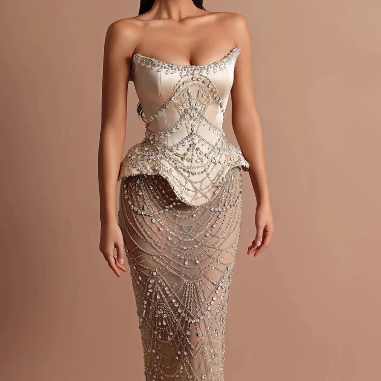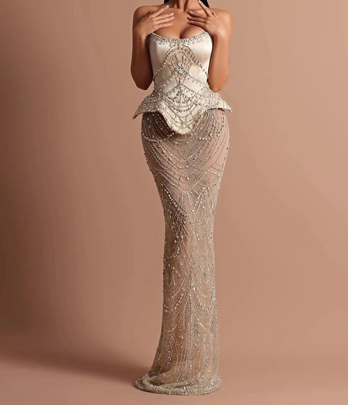 فستان فاخر مزين بالكريستال بتصميم كورسيه مميز