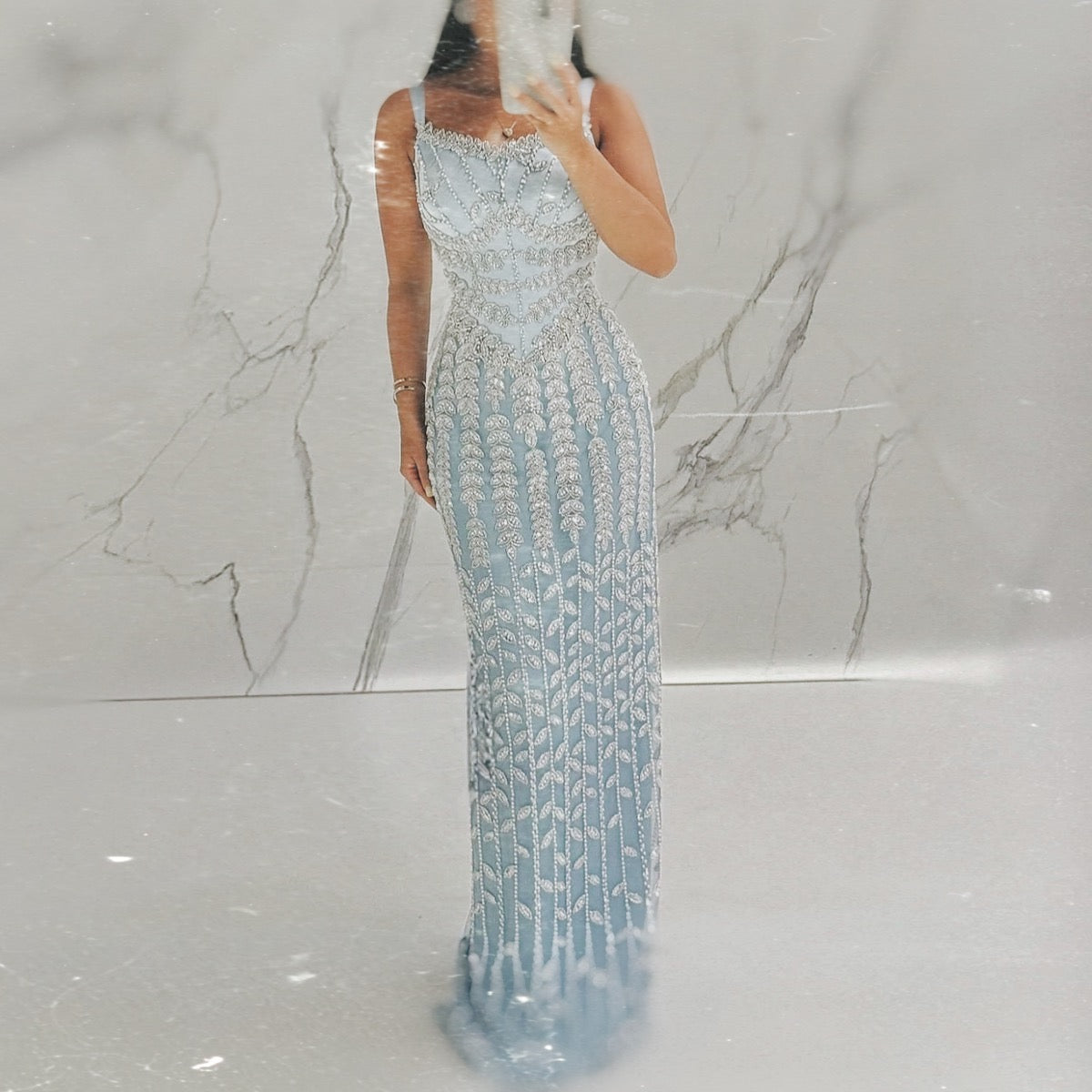 فستان بتصميم راقي مطرز ومزين بالكريستال