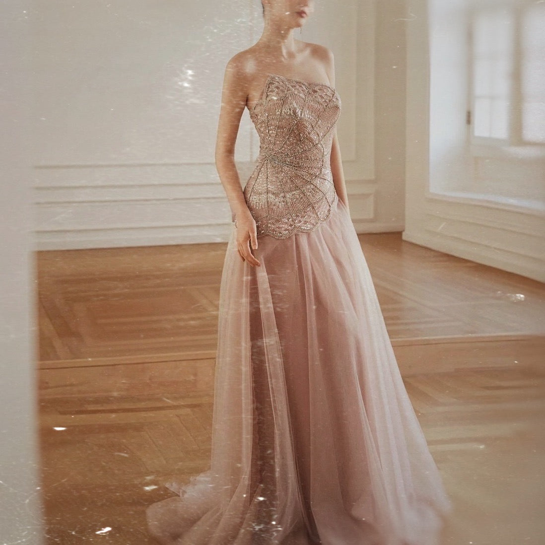 فستان بتصميم مميز وتطريز يدوي فاخر