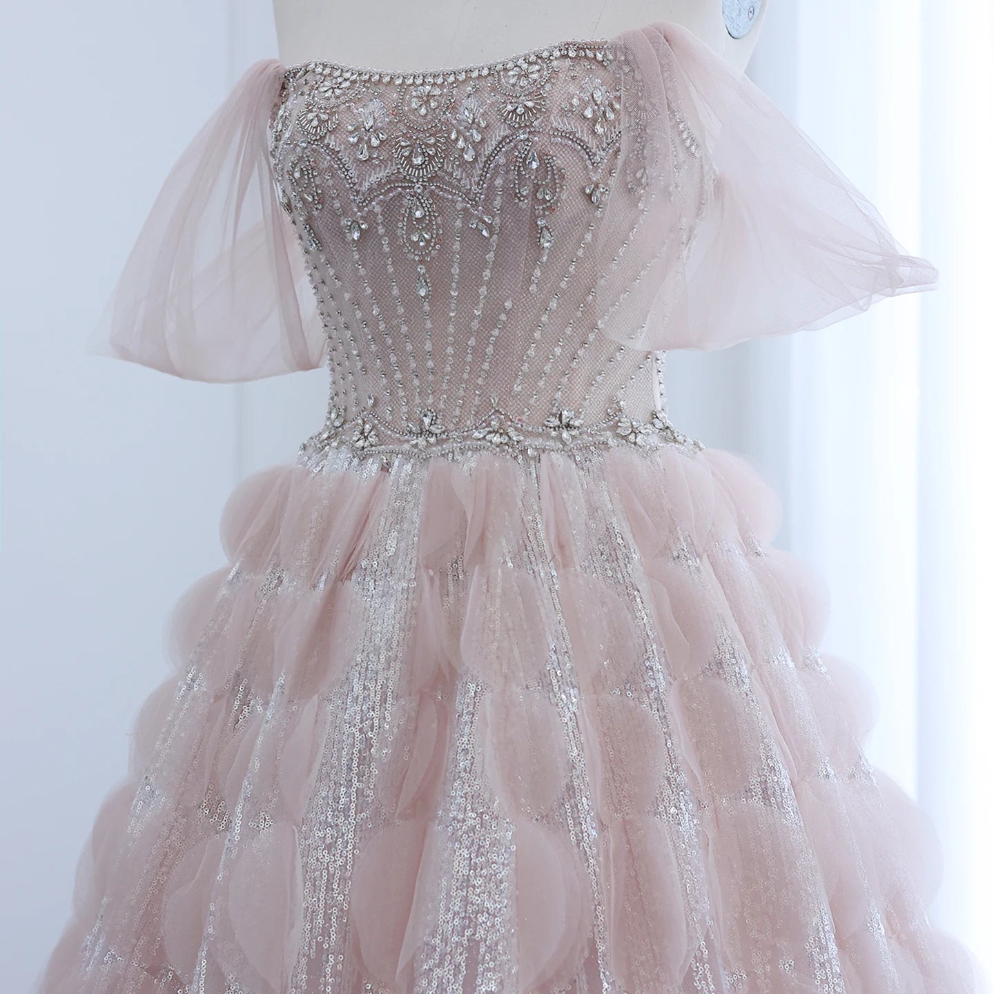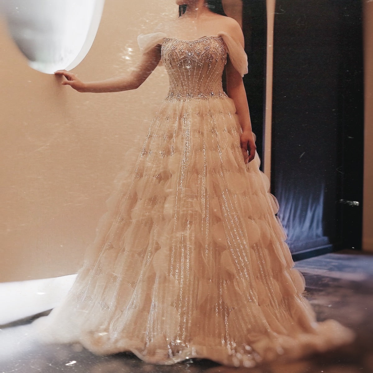 فستان فاخر بتصميم مميز ومزين بالكريستال